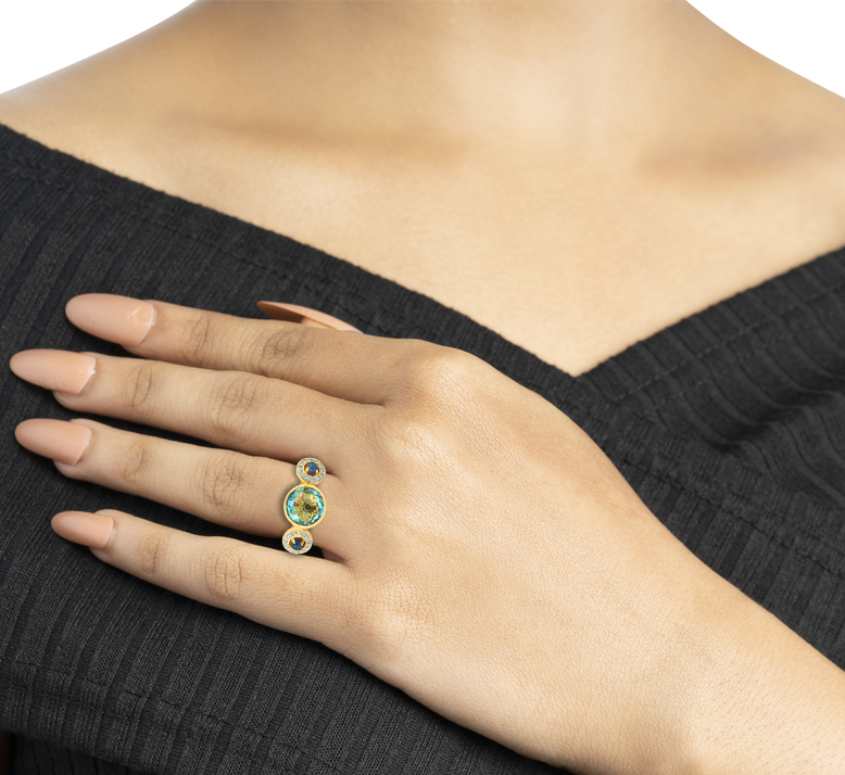 Allure everyone with our spellbinding Hues collection embedded with colourful gemstones in gold and diamonds. Prepare to get obsessed with our mesmerizing jewels.